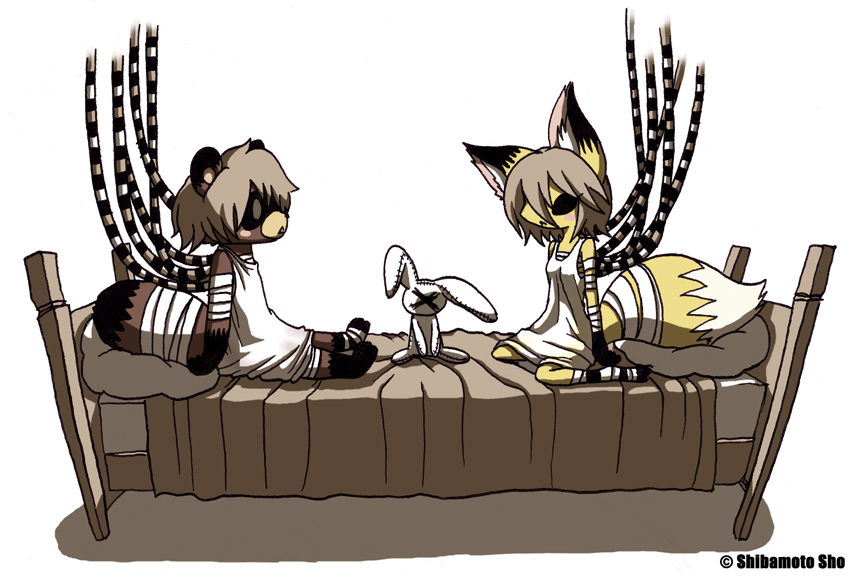 今回のポン子コン子は彩度低め。色は暗め。ベッドはとっても歪みめ。