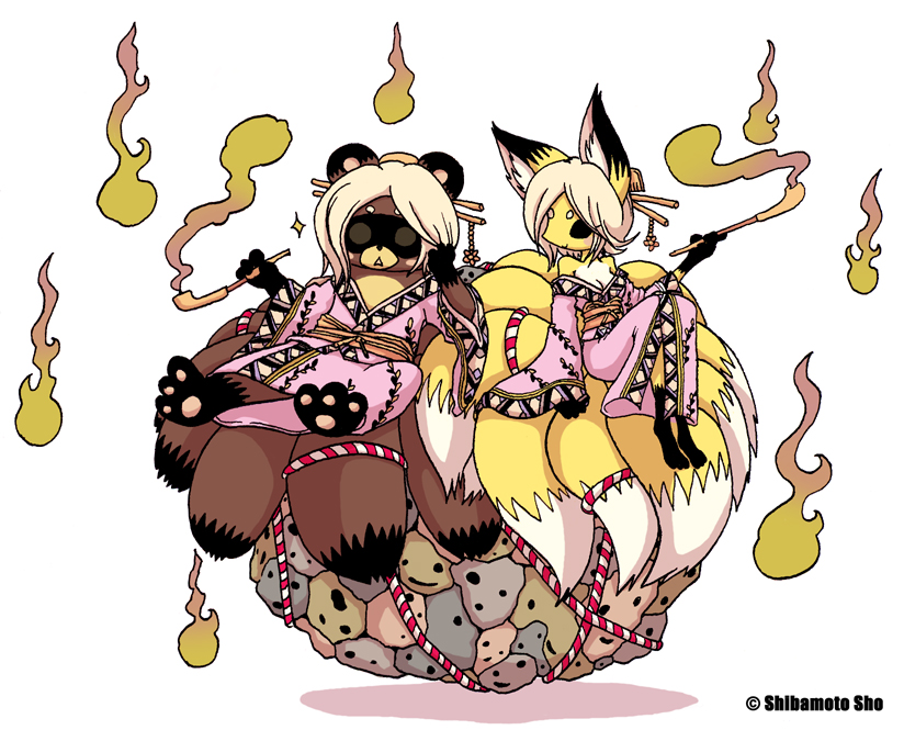 ちなみに本編ではギョウブ先生にはポン子が衣装拝借してますけどおのこです。はじめ、ポン子もシノダの服装にしようと思ってたんですけど、せっかくのタヌキツネコンビなのでこうなりました。