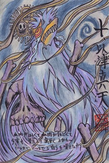 今週の妖怪絵札は前回とうって変わってマイナーな以津真天です。