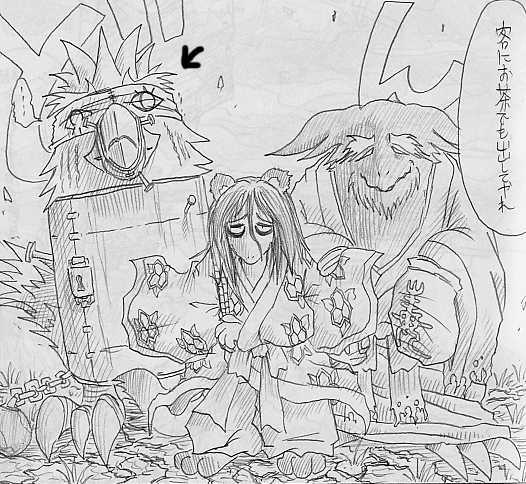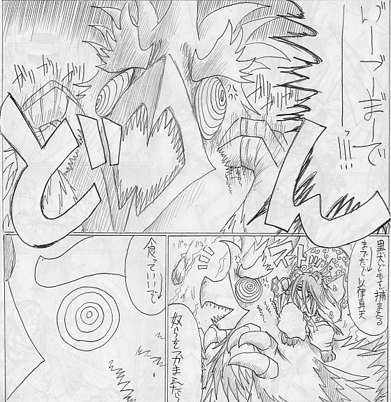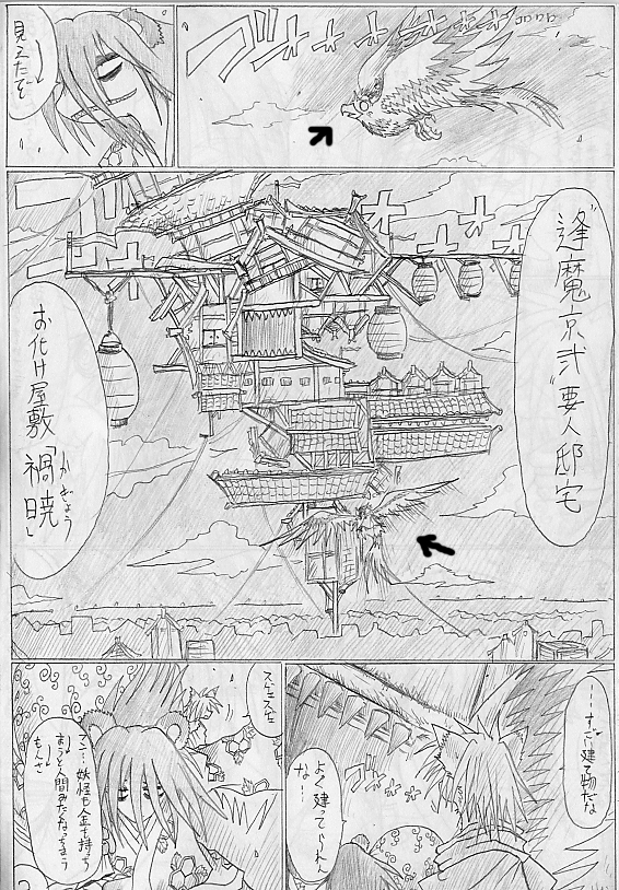 ちなみにこの以津真天は以前ここにアップした○年前に描いた漫画にも登場させてました。