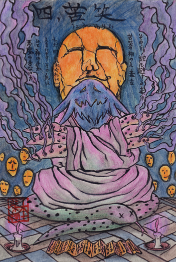 苦笑は以前中学の時描いてた妖怪漫画に登場させました。なぜか以前ここで載せた団三郎の部下でした。