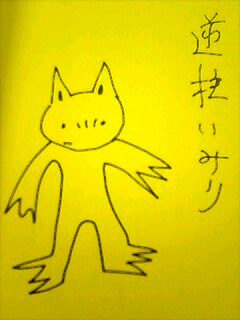 キョキョキョキョ。 中野ブロードウェイにある、タコシェというマニアックな漫画を置いてる店で只今逆柱いみり個展『臍の緒街道』がやっています。 昨日が逆柱いみりさんが来店とのことでしたので、akitoさんと行ってきました。 タコシェが狭い店なのでゆっくりは観れなかったけど、相変わらず独特の既視観を覚える夢のような異形のリゾート。毎回単行本のアタマにイラストが何枚か載っててそれは観ていた訳ですが、生の絵は予想以上に綺麗でした。色もいい感じで、お金があったら欲しいくらい。上の画像の画集で我慢しました。 で、逆柱さん本人にも会うことができました!サインもして貰ったよ!! ネコカッパ可愛い ホントは少しでも話せたらなーと思ってたんだけど、次のお客さんが待ってたんで握手だけしてもらいました。 一番聞きたかったのは「空の巻貝」の単行本はいつ出るんでしょうか!!」ということ 笑。 あとついでだから借りて読んだ赤タイツ男(危険本)もこの機会に買いました。いみりさん来店アワーに合わせてか、積みあがっている赤タイツ男の中に一冊だけ直筆サイン入り本を発見。どうせだからと下から無理やり引っ張り出して買いました。 これがそれ。大体同じ 笑。 しかし生でサイン貰ったの初めてです。嬉しいなあ。アレはいいもんですね。 つかこれで『象魚』、『臍の緒街道』、『赤タイツ男』と、僕が持ってるサインは全部いみりさんです 笑。 逆柱いみりさんはなんか変な話ですが見事に予想通りというか、思ったとおりの感じの人でした 笑。良さそうな人だったです。 あーー!ケキャール社顛末記が欲しい!!誰か定価で譲って!!!! あと、99年に小学館から発売されて絶版になっていたヘルボーイチェインドコフィン(縛られた棺)を発見したので買いました。定価より400円程高かったけど、アマゾンとかで買おうとすると二倍以上とか馬鹿みたいな値段になってるので(まあ、馬鹿みたいな値段で象魚は買ってしまったけど 笑)半分諦めてたので買えて良かったです。 滅びの右腕も一緒にあってどっちか迷ったんですが、古いほうを選びました。しかしそのうちそっちも…!! 二冊買うには金が足りなかったです。 チェインドコフィンは破滅の種子や魔神覚醒と違って短編ものを収録したタイプで、表題の『縛られた棺』と『聖オーガストの人狼』が結構面白かったです。『屍』もキャラがいい感じだったし、『バーバ・ヤーガ』と『地の底のクリスマス』は雰囲気が良かったです。『巨人の如き』は魔神覚醒の気になる続きだったので読めてよかった。 まあ要は全部面白かったです 笑。 ヘルボーイのいい人っぷりと、ダイハードのマクレーンみたいに文句たれながら戦う感じがまたいいね。 それにしても昨日は久々に沢山漫画買ったもんだ…