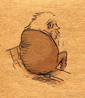web拍手のストックが1件だけだったので、この記事に一緒に載せちゃいます。 ゴメンネ。 まずはフランスの漫画(BD)、『天空のビバンドム』について。 正直、天空のビバンドムの全てについての感想は今の僕には書けません 笑。まだ把握しきれていないというか、追い切れないというか、解説なんてまず出来そうにないです。(しようとも思わないけれど。)あえて感想というなら、記事のタイトルにあるように、 ↑ の落書き自体が感想だと思ってください。 ビジュアルの凄まじさについてはきっと誰もが感想に書くだろな。油彩水彩コラージュペン画、果てにはデジタル着彩等など、ありとあらゆる描法画材が投入されています。 1コマ1コマの描き込み塗り込みの量が半端じゃない。ただ、それでいて見難い事はなく、むしろその描き込みが読者を、1コマ1コマ隅々まで没入させる。 表面に見えている部分のみの意味で言う『ストーリー』もとても面白いものでした。語り手・視点・時間軸が交錯した、愉快で奇妙で、グロテスクな物語です。 キャラクター造形も素晴らしい。↑の落書きを描いてる時も、とても気持ちが良かった。 悪魔ベルゼバブと鳥一族、セラファン、市長あたりが特に好き。ロンバックス教授のキャラもいいなあ。まあでも、中でも悪魔が一番いいキャラしてるね。テリー・ギリアム監督の『Drパルナサスの鏡』の悪魔ニックといい、ヨーロッパ感覚の悪魔さんはいいキャラしておる。 天空のビバンドムは、持っているものが凄く多い漫画です。何度か読むうちに、色んなものが流れ込んできます。この落書きを描くときも、描く事で何か繋がる部分が見えたりして。まあ、残念ながら僕には文章構成の力がないので、言葉や文字に出来ないのですが。 月並みな表現ですが『絵画的な漫画』というか。 ここで言ってる『絵画的』ってのは、難解であるとかそういう意味ではなくて、絵画に触れる時のように、『見えるように観て楽しめばいい』という意味のつもりです。 絵を見るってのはそんなに堅苦しい事ではないよね。時代背景とか、これはなになにの象徴であるとか、そういう見方は、そういう見方の出来る人・好きな人がすれば良い訳で、本来的には、それぞれ自由な立ち位置で触れて楽しめばいいというか。これは度合いの違いはあれど、映画も漫画も小説もそうだと思っています。 脱線失礼。 とにかく単純に面白いマンガ本です!アマゾンで冒頭を試し読みできるので、( http://www.amazon.co.jp/gp/reader/4864100446/ref=sib_dp_ptu#reader-link )読んでみて好きな雰囲気だったら是非買って読んでみる事をオススメするよ。 しかし、よく日本語訳版出したよなあ。とてもえらいし、これを日本語で読めるのは非常に有り難いです。 次は同作者ニコラ・ド・クレシー著『氷河期』を読みたいな。 ではビバンドムはこの辺で。最後にweb拍手の返事を1件。 >はじめまして、相馬円(そうま・えん)と申します。妹がツノウサギを買ってきてくれたのがきっかけで、shoさんのサイトにたどり着きました。私はシナリオで食べていくのを目指して目下修業中です。同じ1987年うまれでしたので親近感を持って拍手させていただきました。シナリオライターはモバイル市場があるおかげで、ギャラを考えなければ仕事はある状態です。ただ、やっぱり独学だとライターは厳しい場面が多いのでしばらくどこかに所属して腕を磨こうと思っています。柴本さんの漫画は世の中への愛情が詰まっていて、すごくいいです。私の周りのクリエイターを目指す人は、ちやほやされなくなるとへそを曲げてしまう所があって残念な思いをすることが多いのですが、ツノウサギはまとまってなくても世界に伝えたい気持ちがハッキリあって、作者と一緒に成長していく漫画だと思いました。同世代の人が頑張っているのを見られるのはとても嬉しいので、これからも応援させた下さい。相馬円:http://simaumadan.exblog.jp/ 拍手コメントありがとうございます!そして妹様もツノウサギ購入ありがとうございます! そうですね。ツノウサギは僕の暗黒面がないワケではないですが、色々な愛を持って描けたと思っています。最終的にはそこを描きたい作品でしたので。僕の想いを読み取って戴けて光栄です。 シナリオライターの仕事も大変そうですね…所属するというのは、制作会社のようなものに、でしょうか。なかなかお互い、こういう職種は辛い御辞世な訳ですが共に頑張りましょう。こちらこそ、同い歳の方のご活躍はとても良い刺激になりますです。 因みに、僕自身はちやほやされなくてちょっと捻くれてますよ 笑。 作品自体にそれは滲ませませんけど。 誰か僕を誉めてよう!!! ではでは今回はこの辺で。 チェーリオ!